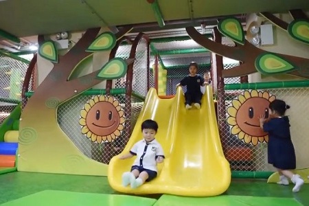 ▲校园引进室内游乐场,不只令小朋友玩得开心,还可以训练感官和手脚协调能力。